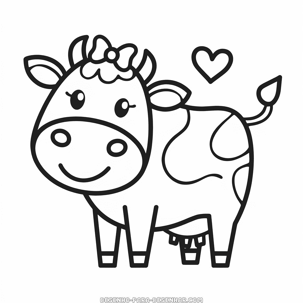 Desenho fácil da Vaca com Laço para imprimir gratuitamente, uma vaca fofa com um laço que vai encantar as crianças. Desenho para colorir simples perfeito para decalcar ou pintar com crianças. Modelo em alta resolução, ideal para impressão em PDF preto e branco no formato A4.