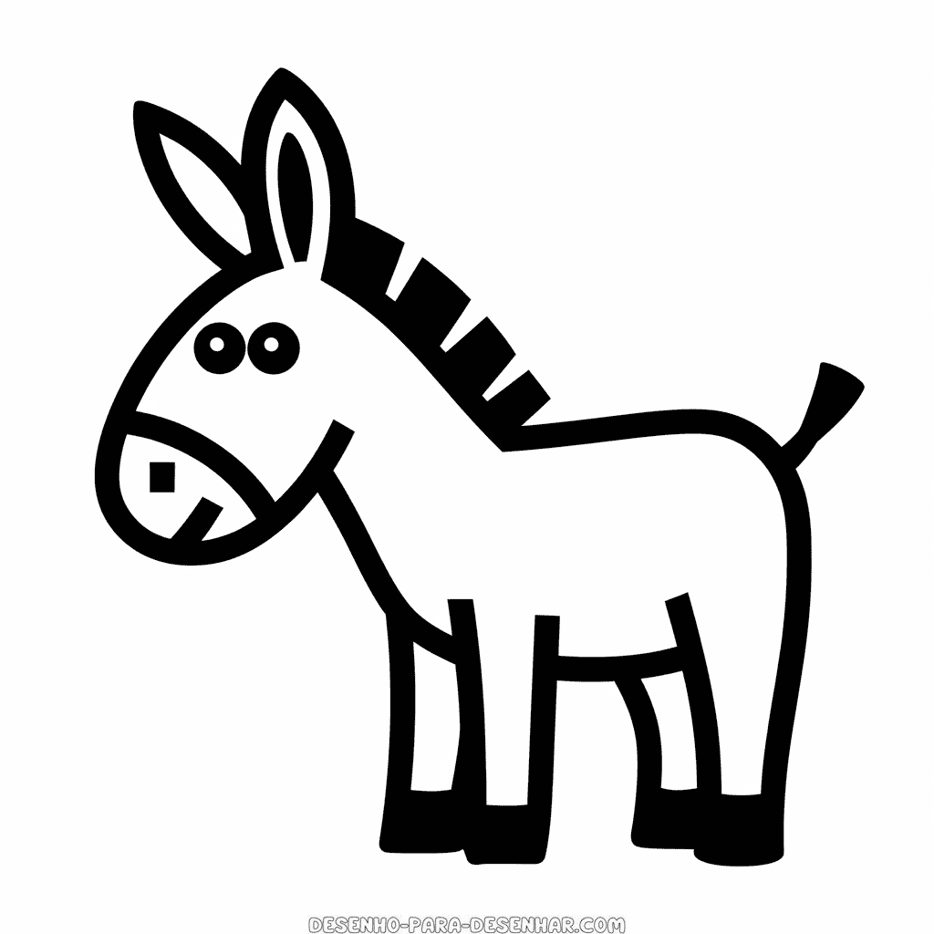Desenho fácil de Burro para Bebê para imprimir gratuitamente, este adorável burrinho é ideal para as mãos pequenas se divertirem colorindo e aprendendo. Desenho para colorir simples perfeito para decalcar ou pintar com crianças. Modelo em alta resolução, ideal para impressão em PDF preto e branco no formato A4.