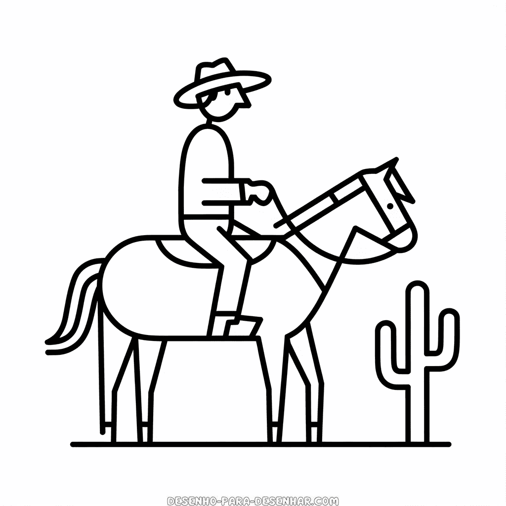 Desenho Fácil de Cowboy no Cavalo