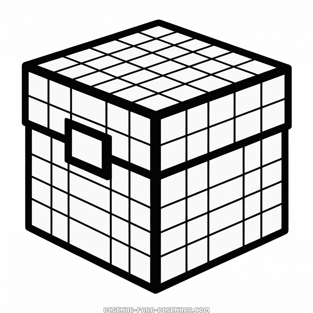 Desenho fácil do Baú do Minecraft para imprimir gratuitamente, uma representação divertida do icônico baú do jogo muito apreciado por crianças. Desenho para colorir simples perfeito para decalcar ou pintar com crianças. Modelo em alta resolução, ideal para impressão em PDF preto e branco no formato A4.