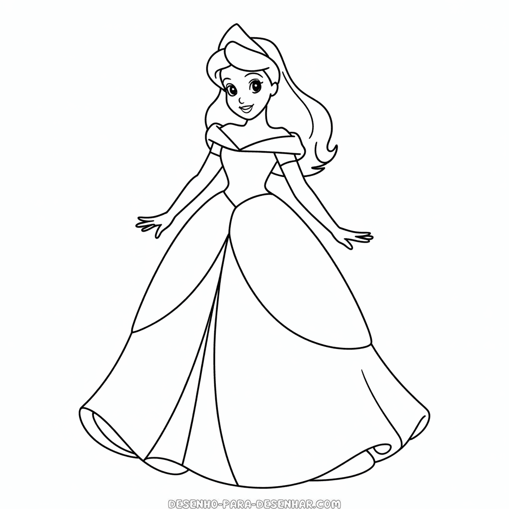 Desenho fácil do contorno da Princesa Disney para imprimir gratuitamente, com um traçado encantador que permite às crianças adicionar suas cores favoritas. Desenho para colorir simples perfeito para decalcar ou pintar com crianças. Modelo em alta resolução, ideal para impressão em PDF preto e branco no formato A4.