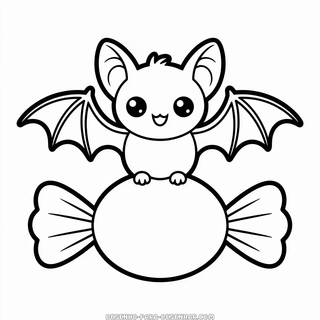 Desenho fácil do Fofo Kawaii de Halloween para imprimir gratuitamente, uma ilustração encantadora que captura a essência divertida e mágica do Halloween em estilo kawaii. Desenho para colorir simples perfeito para decalcar ou pintar com crianças. Modelo em alta resolução, ideal para impressão em PDF preto e branco no formato A4.