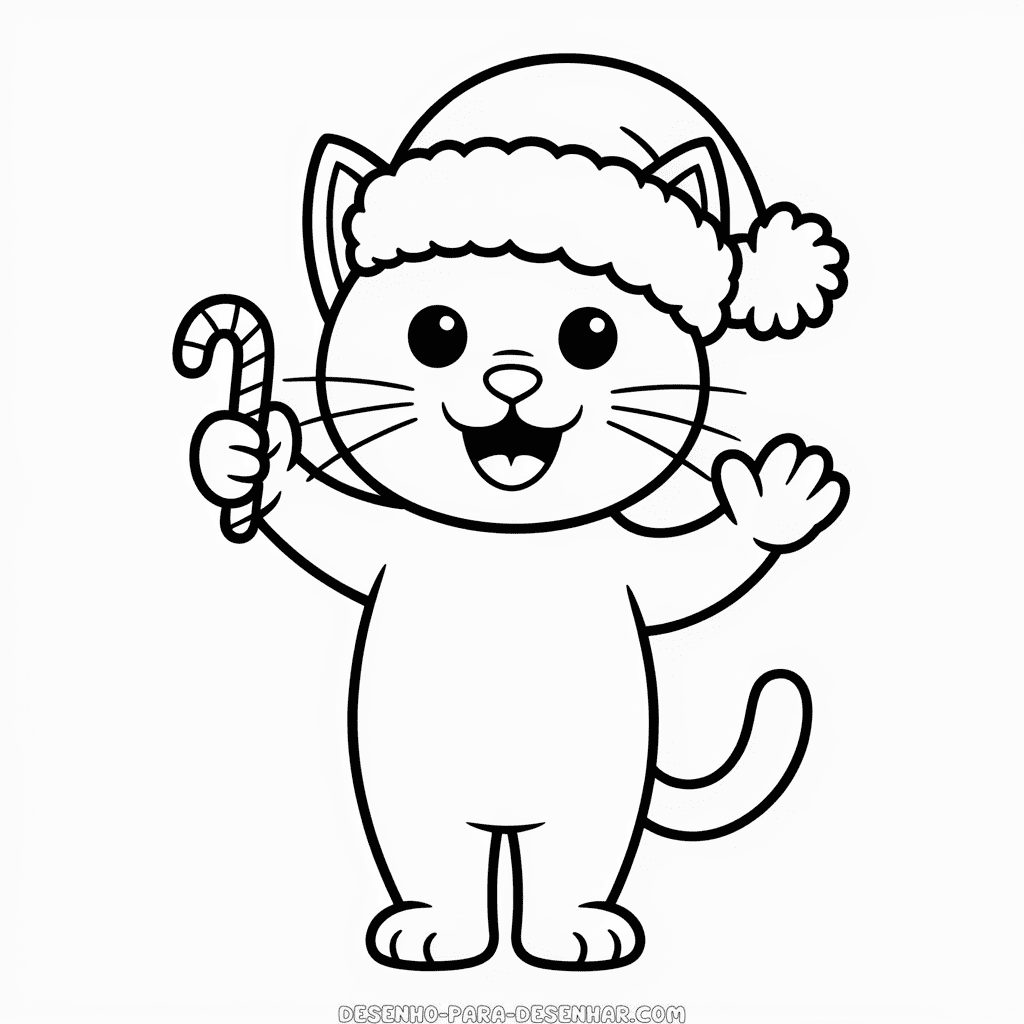 Desenho Fácil do Gato de Natal em Desenho Animado