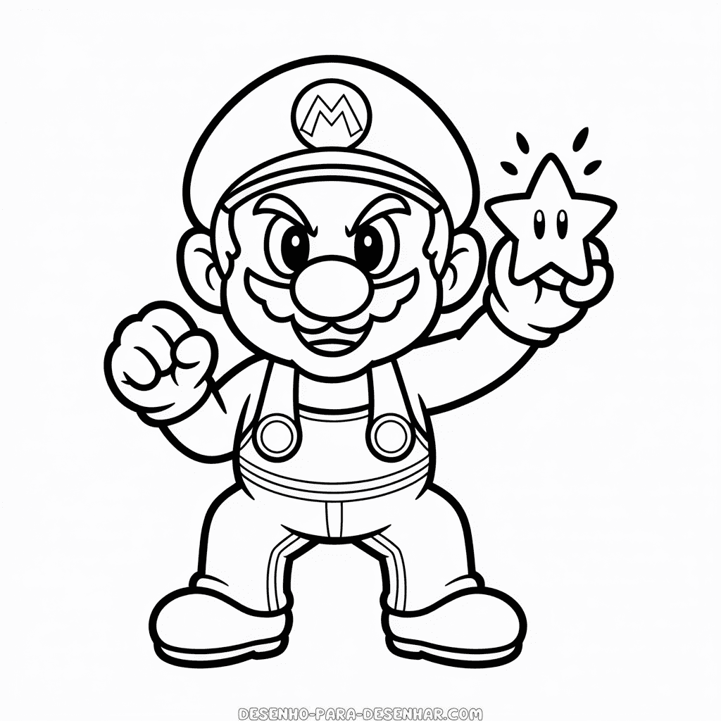 Desenho fácil do Mario Malvado para imprimir gratuitamente, uma versão divertida e ousada do famoso personagem de videogame ideal para inspirar os fãs mirins. Desenho para colorir simples perfeito para decalcar ou pintar com crianças. Modelo em alta resolução, ideal para impressão em PDF preto e branco no formato A4.