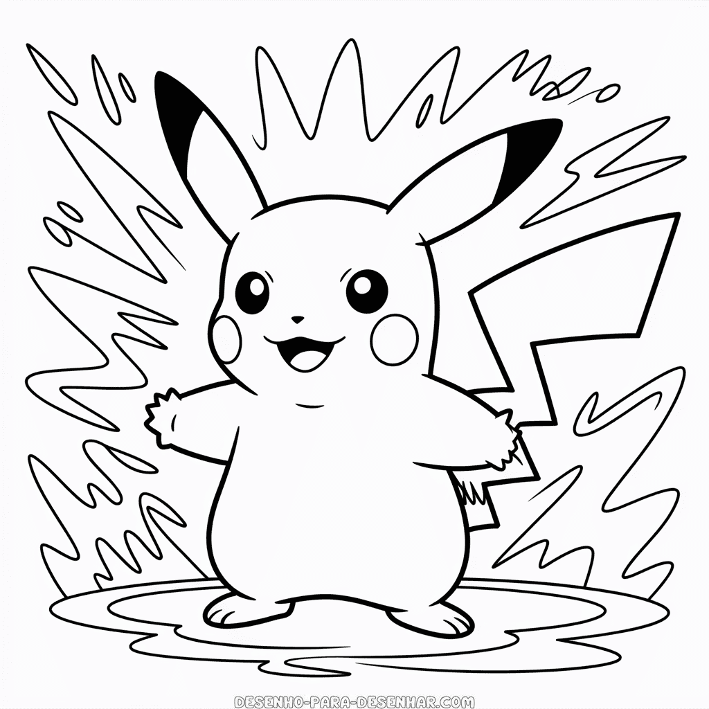 Desenho fácil do Mega Pikachu para imprimir gratuitamente, uma imagem encantadora do famoso Pokémon em uma versão ampliada que vai capturar a imaginação das crianças. Desenho para colorir simples perfeito para decalcar ou pintar com crianças. Modelo em alta resolução, ideal para impressão em PDF preto e branco no formato A4.