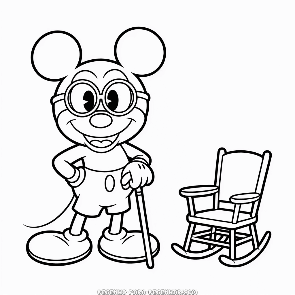 Desenho fácil do Mickey Antigo para imprimir gratuitamente, uma ilustração clássica do Mickey Mouse no seu estilo vintage que encanta crianças e adultos. Desenho para colorir simples perfeito para decalcar ou pintar com crianças. Modelo em alta resolução, ideal para impressão em PDF preto e branco no formato A4.
