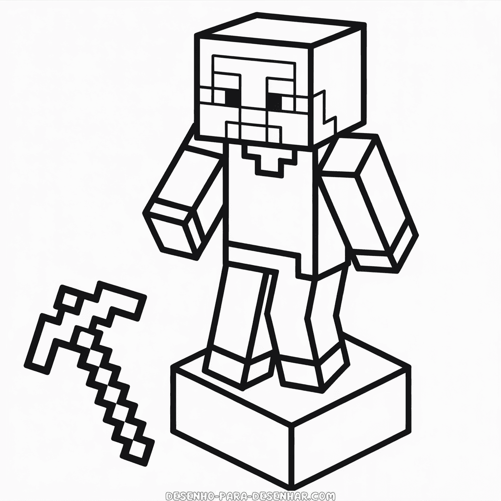 Desenho fácil do Minecraft 3D para imprimir gratuitamente, mostrando uma cena cativante deste famoso jogo que as crianças adoram explorar. Desenho para colorir simples perfeito para decalcar ou pintar com crianças. Modelo em alta resolução, ideal para impressão em PDF preto e branco no formato A4.