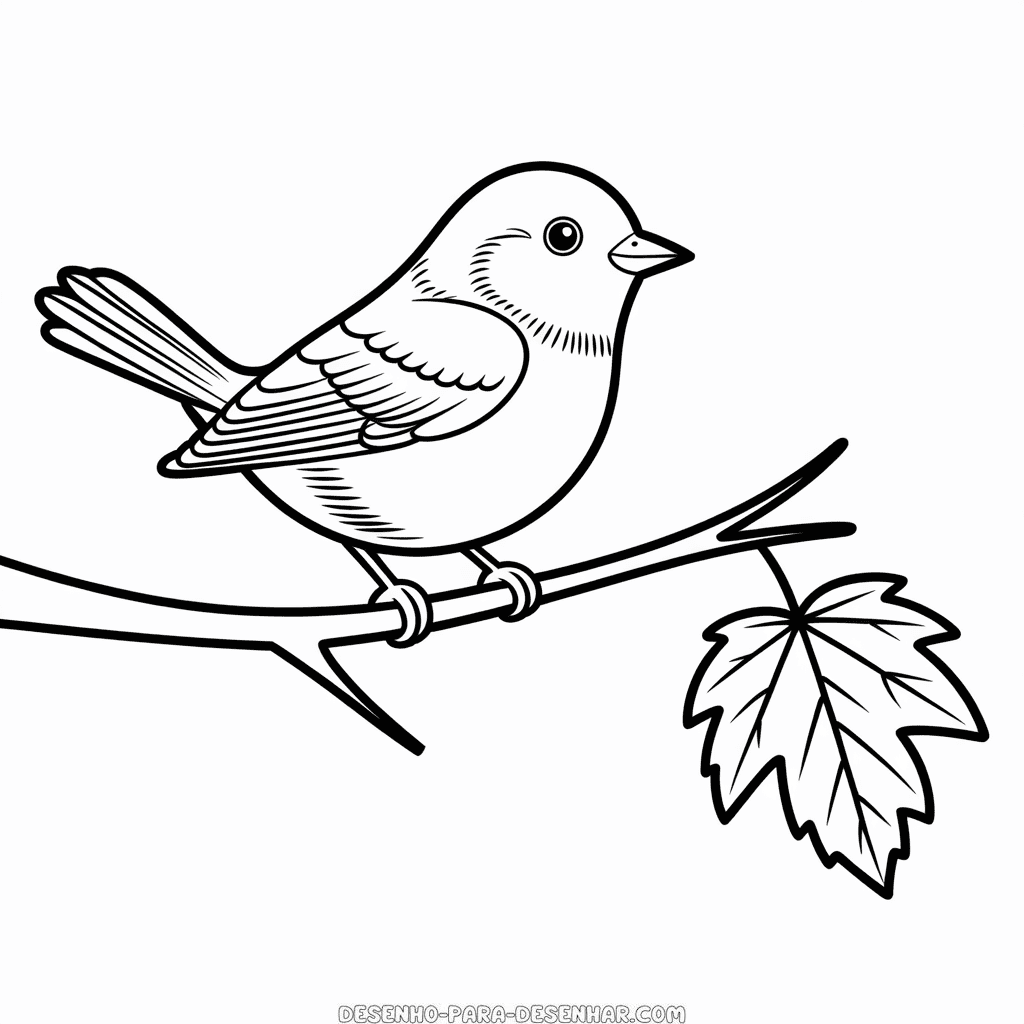 Desenho fácil do Pássaro do Outono para imprimir gratuitamente, um simpático pássaro cercado por folhas caídas e tons de outono para inspirar a criatividade dos pequenos. Desenho para colorir simples perfeito para decalcar ou pintar com crianças. Modelo em alta resolução, ideal para impressão em PDF preto e branco no formato A4.