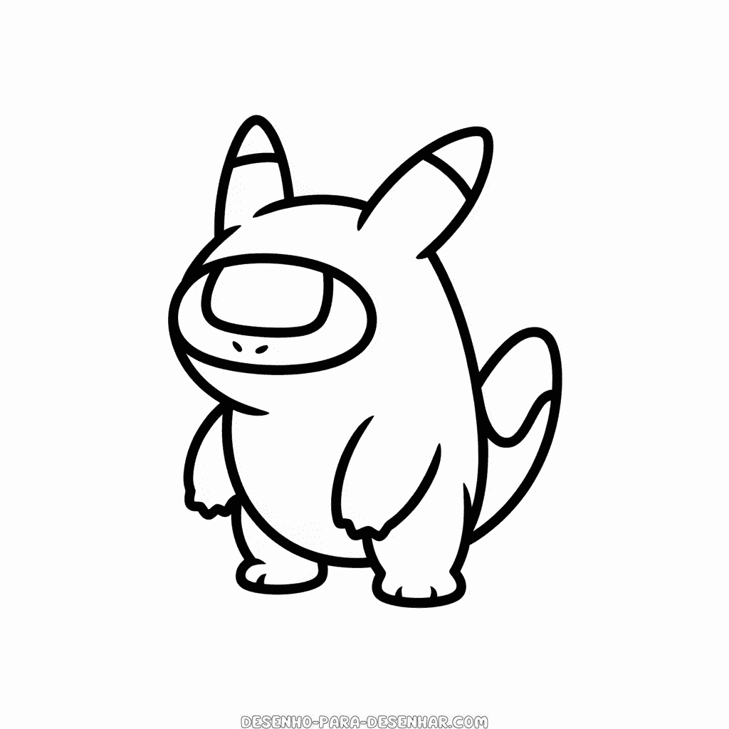 Desenho fácil do Pokémon Among Us para imprimir gratuitamente, com um visual divertido que combina o mundo dos Pokémon e do jogo Among Us. Desenho para colorir simples perfeito para decalcar ou pintar com crianças. Modelo em alta resolução, ideal para impressão em PDF preto e branco no formato A4.