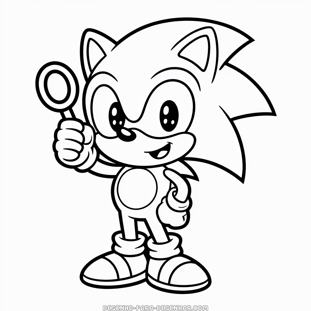 Desenho fácil do Sonic Chibi para imprimir gratuitamente, uma versão adorável e simplificada do famoso ouriço azul que encanta crianças e principiantes. Desenho para colorir simples perfeito para decalcar ou pintar com crianças. Modelo em alta resolução, ideal para impressão em PDF preto e branco no formato A4.