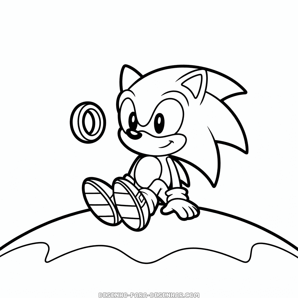 Desenho fácil do Sonic Fofo para imprimir gratuitamente, apresentando o icônico ouriço azul em um estilo adorável que as crianças vão adorar. Desenho para colorir simples perfeito para decalcar ou pintar com crianças. Modelo em alta resolução, ideal para impressão em PDF preto e branco no formato A4.