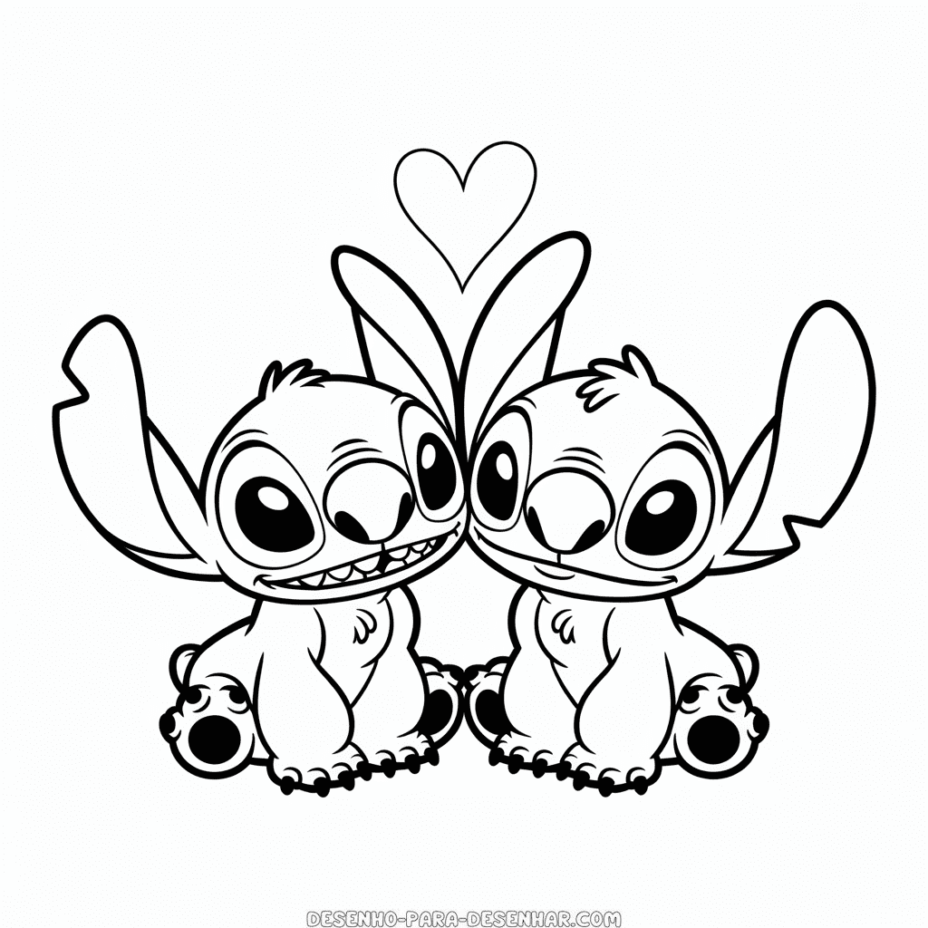 Desenho fácil do Stitch e da Angel para imprimir gratuitamente, ideal para crianças que adoram esses personagens adoráveis em aventuras galácticas. Desenho para colorir simples perfeito para decalcar ou pintar com crianças. Modelo em alta resolução, ideal para impressão em PDF preto e branco no formato A4.